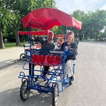 Later in the day, we visited Margaret Island, a peaceful green oasis in the middle of the Danube. We hired a two-person bike cart, which was hilarious (and chaotic). Our road sense was... questionable. At one point, we ended up on the running track, much to the amusement of the joggers. It's one of my funniest memories of the trip.
