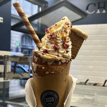 This sugary, spiral-shaped dough is roasted over an open flame until golden and crispy on the outside, soft on the inside — absolute street food heaven. We went all in with our choice: an almond-crusted chimney cone, filled with rich caramel, topped with whipped cream, a generous drizzle of caramel sauce, berry bits, a crunchy wafer twirl, and the ultimate finishing touch — a Biscoff biscuit. It was indulgent, over-the-top, and completely dreamy. The perfect treat to devour while strolling through the city.