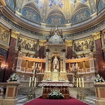 Afterward, we visited St. Stephen’s Basilica, the largest church in Budapest. It’s named after Hungary’s first king, and inside, his mummified right hand is housed in a reliquary (a little creepy, I won’t lie). But the church itself? Stunning. Ornate, peaceful, and jaw-droppingly beautiful.